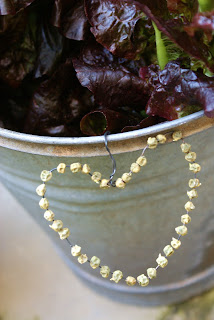 The tray boasting second-hand bargain bowls with the latest cherry tomato harvest from the garden, the last few days' crop of walnuts from the neighbours' tree - having had the good taste to fall on our side of the fence, together with the conkers we found on yesterday's walk...